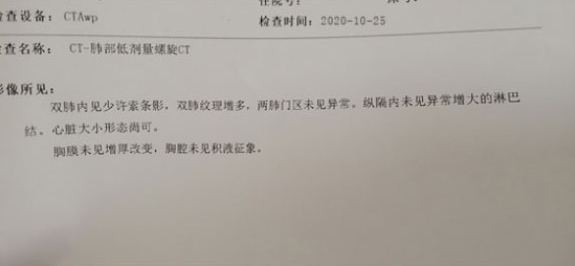 终于出院了,我以为这样就万事大吉了,在家修养了一个月左右的时候,学生们的课程不能落下啊,我又回去继续代课了,大概过了半年多的时间吧。 我感觉自己的呼吸越来越憋得慌,咳嗽的频率也增加了,而且还出现了胸闷乏力的情况,我当时就觉得坏了,八成是肺结节又复发了,我特意去做了一个肺部ct,还是当时的那个医生,一看我的报告, 左肺上叶又长出了一个7mm的实性结节,双肺纹理增粗,医生告诉我这些都是不好的情况, 但是我已经做过一次手术了,短时间内不好再做手术,让我找找当地的中医调理一下吧!我现在对手术,西医真的是一点也不信任了,做手术钱没少花,罪没少受,没想到是这个结果!